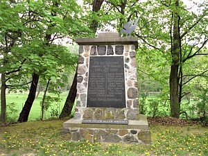 Aus Feldsteinen gemauertes Denkmal für die Gefallenen des Ersten Weltkriegs mit zusätzlich angebrachter allgemeiner Gedenktafel für die Opfer des Zweiten Weltkriegs und stilisierter Metall-Friedenstaube (als Ersatz für gestohlenen Adler). Gedenktafel für die Gefallenen des Ersten Weltkriegs in der Kirche. Gedenkkreuz, Soldatengräber und Gedenken auf Familiengräbern auf dem Friedhof. Namen und Daten von Kriegsopfern aus dem Sterberegister und anderen Quellen.