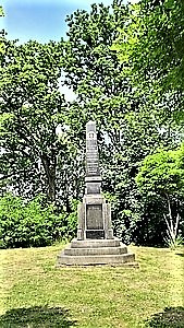 Obelisk außerhalb des Ortes mit drei Steinplatten (vorn, links und rechts), auf denen die Namen eingemeißelt sind.