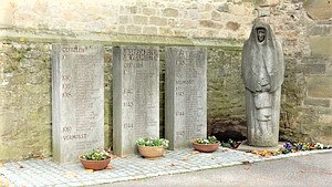 Roßwag wird auf drei Stelen der Toten und Vermissten beider Weltkriege gedacht.