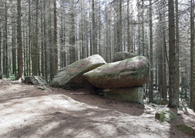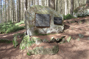 Auf einem Felsen neben dem Naturdenkmal Dreibrodensteine gedenkt das Forstamt Andreasberg seiner gefallenen und vermissten Waldarbeiter und Beamten aus beiden Weltkriegen.