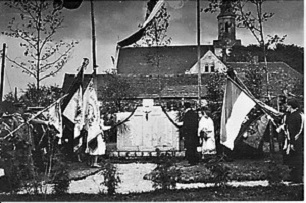 Geographische Position: 51.2725°N  17.7197°O Kriegerdenkmal Nähe der Kirche in