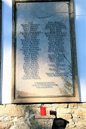 Stele und vier Tafeln am Torhaus des Bergfriedhofs an der Bergkirche. Die Tafeln enthalten die Namen der