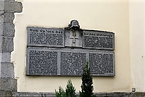 Gedenktafeln aussen an der Kirche; zusätzlich Daten von privaten Gedenksteinen