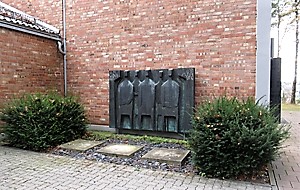 Schwaig b. Nürnberg (Wald-Friedhof), Landkreis Nürnberger Land, Mittelfranken, BayernPLZ 90571 Ehrenmal an der Aussegnungshalle des Wald-Friedhofs (ohne Namen).