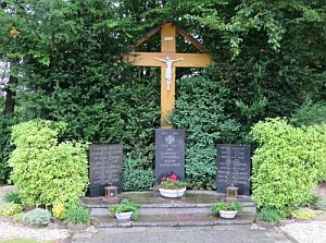 Holzkreuz , davor eine Inschriften- sowie zwei Gedenktafeln