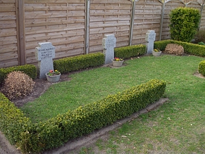 Kriegsgräberstätte in Seegefeld: drei Namenssteine ohne Widmung am Rande des Friedhofs. Ergänzende Informationen aus dem Sterberegister.