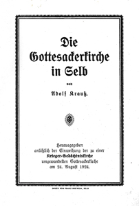 Abschrift der Tafeln in der Gottesackerkirche in Selb von Adolf Krauß. „Herausgegeben anläßlich der Einweihung der zu einer Krieger-Gedächtniskirche umgewandelten Gottesackerkirche am 24. August 1924.“