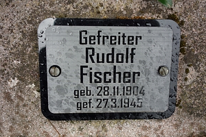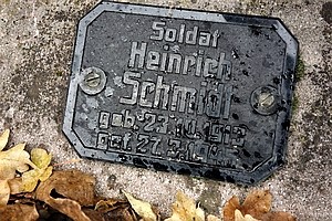 aufgestellte Namenstafeln erweitert. Abseits davon ruhen drei deutsche Soldaten, gefallen in den