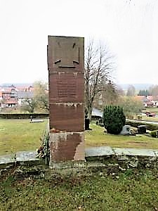 Sandsteinsäule aus vier Quadern oben ein Deutsches Kreuz