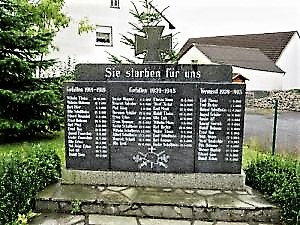 Kriegerdenkmal aus Marmor mit deutschem Kreuz