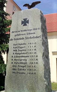 Ihren im Weltkriege 1914 – 18 gefallenen Söhnen die Gemeinde Steckelsdorf