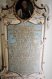 Im Kirchenraum hängt eine weitere Tafel für den Hauptmann Alexander Friedrich Georg