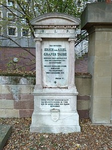 Grabstätte der Brüder von Taube R. I. P. DIE BRÜDER (Namen und Daten) JEDER PFLICHT GEHORSAM HABT IHR GELIEBTE KINDER IM TODE WIE IM LEBEN LIEBE UND TREUE BEWAHRT.