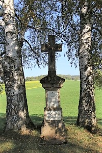 Steinernes Wegkreuz ausgangs der Stadt an der Straße nach Leipferdingen.