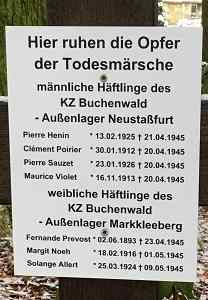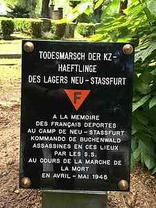 Tafel 3 Todesmarsch der KZ-Häftlinge des Lagers Neu-Staßfurt A la memoire des français deportes au camp de Neu-Stassfurt kommando de Buchenwald assassines en ces lieux par les S.S. au cours de la marche de la mort en avril – mai 1945