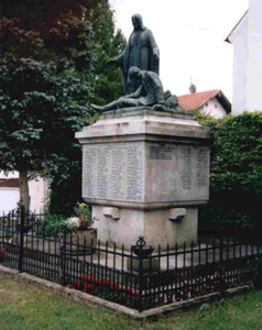 starben für Heimat u. Vaterland im Weltkrieg 1914-18 aus unserer Pfarrgemeinde folgende Helden: (Namen)