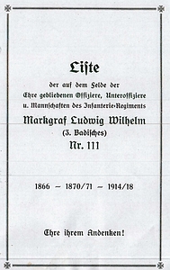 des Infanterie-Regiments Markgraf Ludwig Wilhelm (3. Badisches) Nr. 111 – 1866, 1870/71, 1914/18