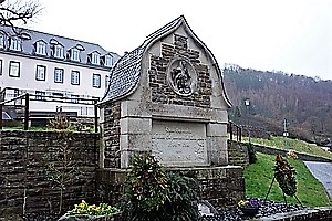 Waldbreitbach. Ursprünglich waren auf der Vorderseite beiderseits des Ehrenmalspruches die