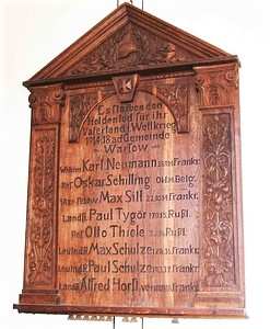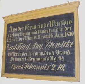 1871 Aus der Gemeinde Warsow starb für König und Vaterland in der Schlacht bei Vionville am 16. Aug. 1870 (Name/Daten) Offenb. Johannis 2,10.