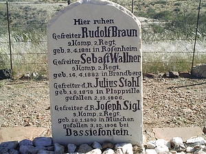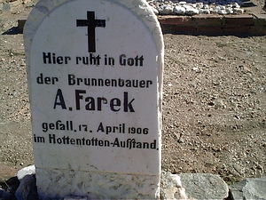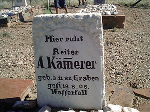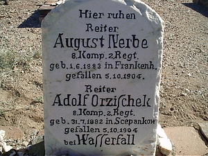 Der Ort Wasserfall mit dem Kriegsfriedhof des Herero- und Nama-Krieges (damals als Hottentotten-Aufstand