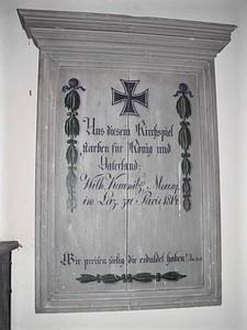 Aus diesem Kirchspiel starben für König und Vaterland. (Name) Wir preisen seelig die erduldet haben. Jac. 5 v.11