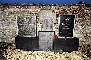 ziviles Bombenopfer; auf dem Friedhof beigesetzt; Grabmal erhalten und an Gedenkstätte neu gruppiert