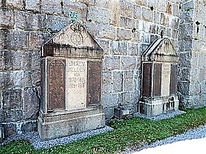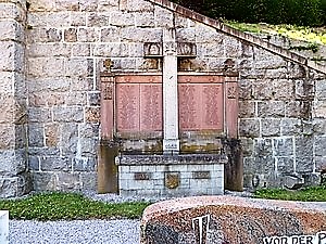 Anmerkung: * Laut Preußischer Verlustliste Nr. 101 wurde ein Füsilier Johann Gerstner aus Weißenbach, Amt Germbach (so!), dienend in der 10. Kompanie des Großherzoglich Badischen 1. Leib Grenadier-Regiment, im Gefecht bei St. Remy am 6. Oktober 1870 schwer verwundet („S. i. l. Oberschenkel“). Welcher der beiden Namen Gerstner Joh. zu dem Verwundeten gehört, konnte nicht ermittelt werden. ** Laut Preußischer Verlustliste Nr. 155 erlitt ein Unteroffizier Carl Krieg aus Weißenbach, Amt Gernsbach, am 18. Dezember 1870 bei Nuits infolge eines Schusses durch den rechten Fuß eine leichte Verwundung und wurde ins Lazarett Dijon gebracht. Der Unteroffizier leistete Dienst in der 4. Kompanie des Großherzoglich Badischen 4. Infanterie-Regiments. Welcher der beiden Namen ‚Krieg Karl‘ zu dem Verwundeten gehört, konnte auch in diesem Fall nicht herausgefunden werden. *** Laut Preußischer Verlustliste Nr. 1288 vom 7. November 1918 verstarb ein Anton Kast, geboren am 14. Juni xx in Weisenbach, als Folge seiner Verwundung. Näheres konnte nicht ermittel werden. # Es gab in der 9. Kompanie des Preußischen Landwehr-Infanterie-Regiments Nr. 40 den Landsturmmann Anton Krieg, geboren am 7. Mai 1879 in Au, einen verheirateten Taglöhner und Vater von zwei Kindern, der am 28. Dezember 1915 beim Gefecht am Hartmannsweilerkopf in französische Gefangenschaft geriet. Der Vorname des Vaters des Landsturmmanns lautete Josef. ## Unklar war auch zunächst, ob der Name Eugen Wiedemann identisch ist mit dem St.Ob.Maschinisten Eugen Wiedemann, geboren am 4. Februar 1914 in Weisenbach/Baden, der zusammen mit der gesamten Besatzung (56 weiteren Seeleuten) am 24. Juni 1943 mit U 119 im Nordatlantik unterging. Das Todesjahr stimmt jedenfalls mit dem auf dem Ehrenmal nicht überein. Jedoch listet eine Festschrift anlässlich der Glockenweihe im Juli 1949 als Todesdatum den 24. Juni 1943 auf. Ein besonderer Dank gilt dem Schriftführer des Heimatpflegevereins Weisenbach, Herrn Rudolf Fritz, für seine Unterstützung. Ergänzungen in Rot: Eigene Recherchen (v. a. Verlustlisten des Feldzugs 1870/71 und Erster Weltkrieg bei genalogy.net); Heimatstub‘, hg. vom Heimatpflegeverein Weisenbach, Band 3: Kriegs- und Nachkriegserlebnisse sowie Sterbebilder aus dieser Zeit, Juli 2010, Deutsches Bundesarchiv, Berlin, Kartei der Verlust- und Grabmeldungen gefallener deutscher Sodaten 1939-1945 (-1948) … Ergänzungen in Blau: Daten aus www.volksbund.de/graebersuche.html.
