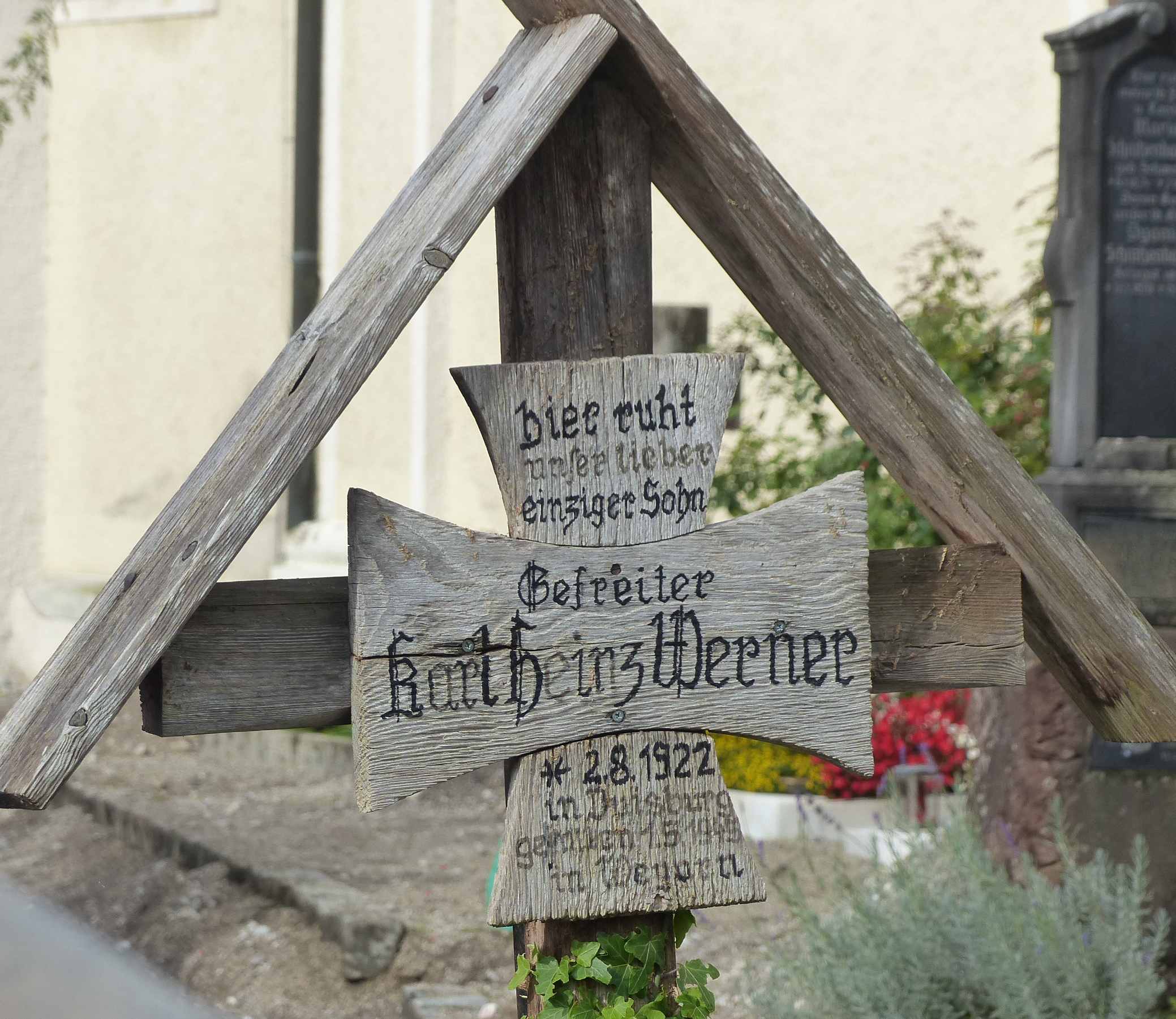 Kriegsgrab und Einzelgedenken vom nahegelegenen Friedhof.