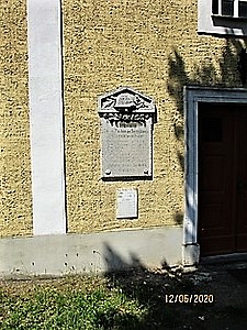 An der Mauer der örtlichen Kirche befinden sich zwei Gedenktafeln für die Gefallenen des