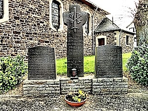Neben St. Hubertus ein Denkmal für die Kriegstoten beider Weltkriege. Den mittleren Teil