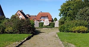 Direkt an der Schönberger Straße (Ortsdurchfahrt B 502) gelegene Anlage mit einem großen Gedenkstein in der Mitte und einem weiteren, mittig geteilten Stein, der mit der glatten Seite links und rechts aufgestellt wurde. Auf der linken Hälfte stehen die Namen der Gefallenen des Ersten Weltkrieges, auf der rechten die des Zweiten Weltkrieges. Fast alle Namen finden sich auch auf den Holztafeln (Erster Weltkrieg) und in der Turmhalle (Zweiter Weltkrieg) in der Kirche in Schönberg (Holstein) wieder.