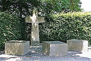 Koordinaten: 53.130657 N / 8.336129 OSteinernes Kreuz mit drei Steinquadern im Bogen davor.