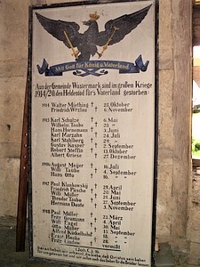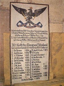 Verantwortlich für diesen Beitrag: Wolfgang KW Garz (Denkmal ohne Namen), R. Krukenberg (www.kriegsopfergedenken.de) (Gedenktafeln, alle Namen und Daten)