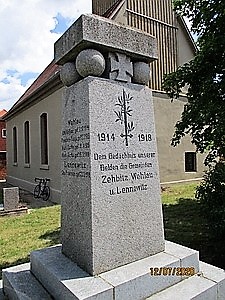 1914 – 1918 Dem Gedächtnis unserer Helden die Gemeinden Zehbitz, Wehlau u. Lennewitz