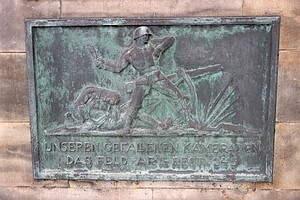 F.A.R. 12 Ehre dem Andenken der im Weltkriege 1914-1918 gefallenen Helden des Königlich Sächsischen 1. Feld-Artillerie-Regiments Nr. 12. Gewidmet zur 300jährigen Wiederkehr des Gründungstages des Regiments am 6. Juli 1920 von seinen ehemaligen Angehörigen.