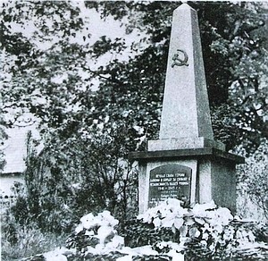 Obelisk in die Höhe. „Ruhm und Ehre den Helden der Sowjetarmee“ war darauf zu lesen. Das Mahnmal