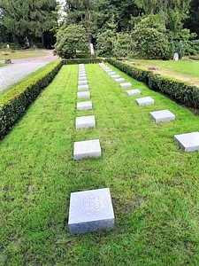Denkmal-Nr.: 09234957 In dieser Anlage auf dem Auerbacher Friedhof Waldstraße liegen 38 Männer begraben. Sie stammen nicht alle aus Auerbach und Umgebung. Viele sind wahrscheinlich in den Lazaretten Auerbach und Rodewisch gestorben. Die Anlage war bereits in den 90er Jahren des vorigen Jahrhunderts erneuert worden. Damals wurden die Gräber mit Holzkreuzen versehen, die im Laufe der Zeit unansehnlich geworden waren. 2021 wurden für sie 37 Grabsteine in Kreuzform gesetzt, die die wesentlichen Daten zu den Toten tragen. Zwei Personen sind namentlich unbekannt. In einem der Gräber sind zwei Personen beerdigt worden. Warum das geschah ist nicht mehr feststellbar.