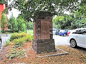 Im Bereich der alten Schule (heute Wohngebäude) steht das Denkmal aus roten Sandstein. Leider sind durch Verwitterung zweier Seiten insgesamt neun Namen nicht mehr lesbar und bei anderen die Informationen nur zum Teil.