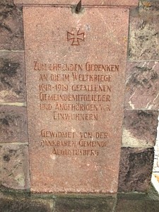 Zum ehrenden Gedenken an die im Weltkriege 1914-1919 gefallenen Gemeindemitglieder und Angehörigen von Einwohnern Gewidmet von der dankbaren Gemeinde Augustusberg