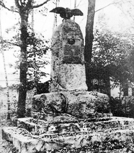 Denkmal für die Gefallenen des 1. Weltkriegs: Dreistufiger Sockel aus Natursteinen, darauf ein aufgerichteter Steinblock mit angebrachter Widmungs- und Namenstafel sowie krönendem Adler (abgerissen).