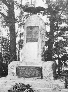Die Inschriften und Namen waren auf vorliegender alter Postkarte nicht lesbar. Es gibt eine andere Aufnahmen auf der eine weitere Namenstafel am Sockel des Denkmals angebracht war. Vielleicht war das ursprüngliche Denkmal für die Einigungskriege 1864-1871 errichtet worden und die untere Tafel wurde nach dem 1. Weltkrieg angebracht. Nach der Übernahme des Ortes durch die neuen polnischen Machthaber 1945 wurde die deutsche Bevölkerung vertrieben und auch dieses Denkmal abgerissen.