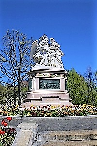 Info-Tafel: Strassburger-Denkmal Geschaffen 1895 von Frédéric Auguste Bartholdi (1834-1904), dem Schöpfer der New Yorker Freiheitsstatue. Geschenk des Strassburger Bürgers Baron Gruyer als Dank für die im Krieg 1870/71 von der Schweiz an das belagerte Strassburg gewährte humanitäre Hilfe.