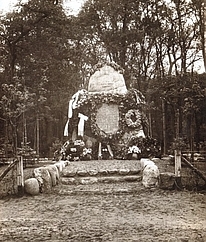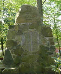 Monument aus Feldsteinen mit je einer Tafel auf drei Seiten.