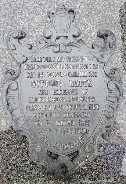 Im Frankfurter Friedensvertrag vom Mai 1871, der den Krieg 1870-1871 beendete, legten Preußen und Frankreich in Artikel 16 fest, dass beiden Staaten die während des Konflikts gefallenen Soldaten in Militärgräbern zusammenlegen und auf gegenseitigem Aufwand erhalten.