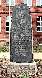 Denkmal für die Gefallenen des 1. Weltkriegs vom Sportverein „Freie Turner Benneckenbeck“: Aufgerichtete Granitplatte mit eingravierten Namen.