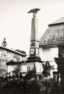 Denkmal für die Gefallenen des Krieges 1870/71: abgestufter schmaler Obelisk mit krönendem Adler. Unten Widmungs- und Namenstafeln und darüber Plaketten mit Portraits von Kaiser Wilhelm I. und anderer Persönlichkeiten.