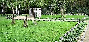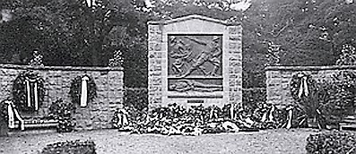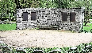 Heute steht dort eine ähnliche halbrunde Mauer mit angebrachten Namenstafeln. Diese enthalten die gleichen Namen und Lebensdaten wie die einzelnen Steine am Wegesrand. Auf den Steinen ist aber noch der Dienstgrad angegeben. Leider sind die alten Steine nicht mehr gut lesbar.