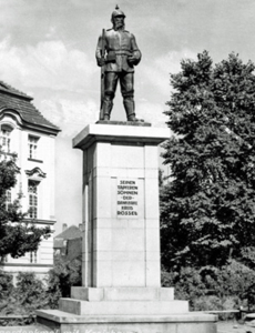 Bevölkerung vertrieben und deutsche Denkmäler abgerissen. Die Bronze-Figur des Soldaten