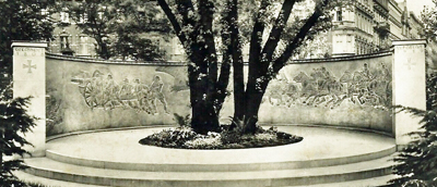 und zentraler Baumgruppe an das alte Denkmal erinnert.