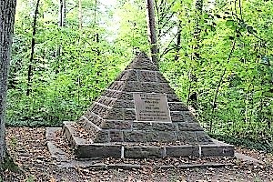 Am Viehweg, beim Brötzinger Schützenhaus: Gemauerte Pyramide mit Tafel.